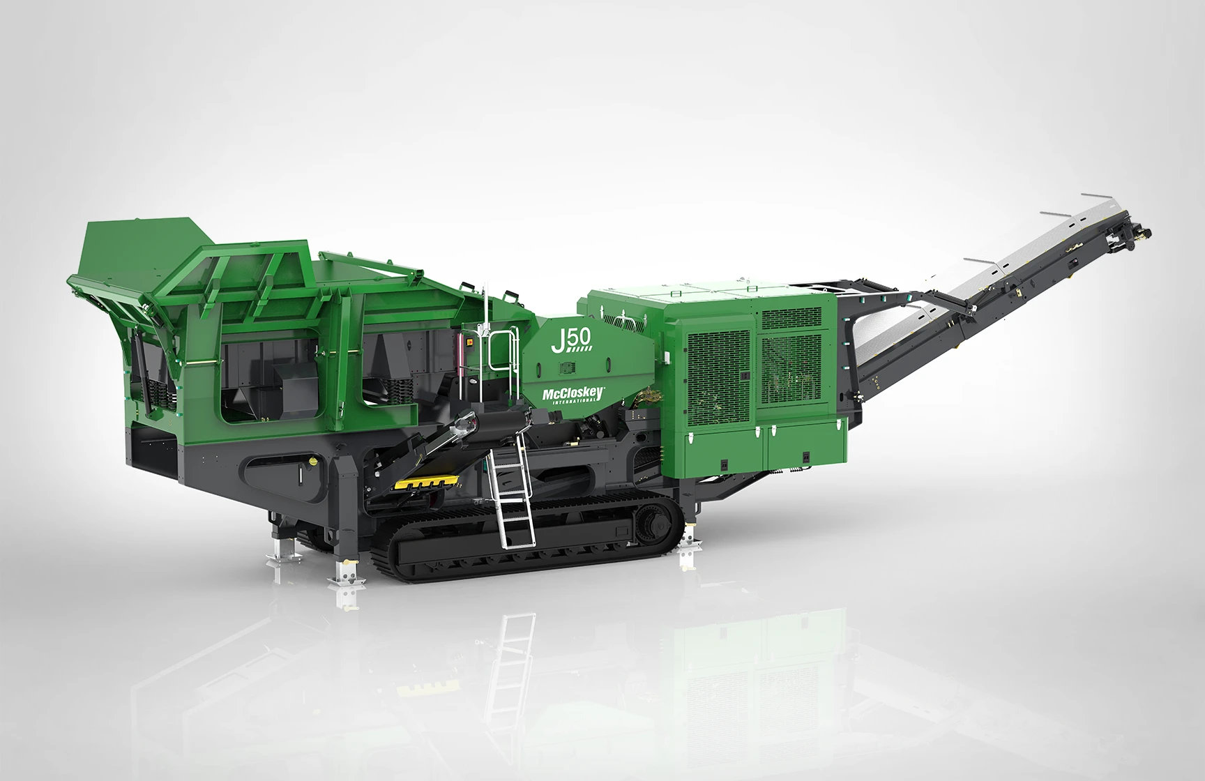 Built for peak performance, the J50’s heavier flywheels and optimized jaw speed deliver faster processing and superior reduction. With industry-leading capacity and stockpile height, it’s the top choice for demanding crushing applications, showcasing McCloskey’s commitment to quality and innovation.